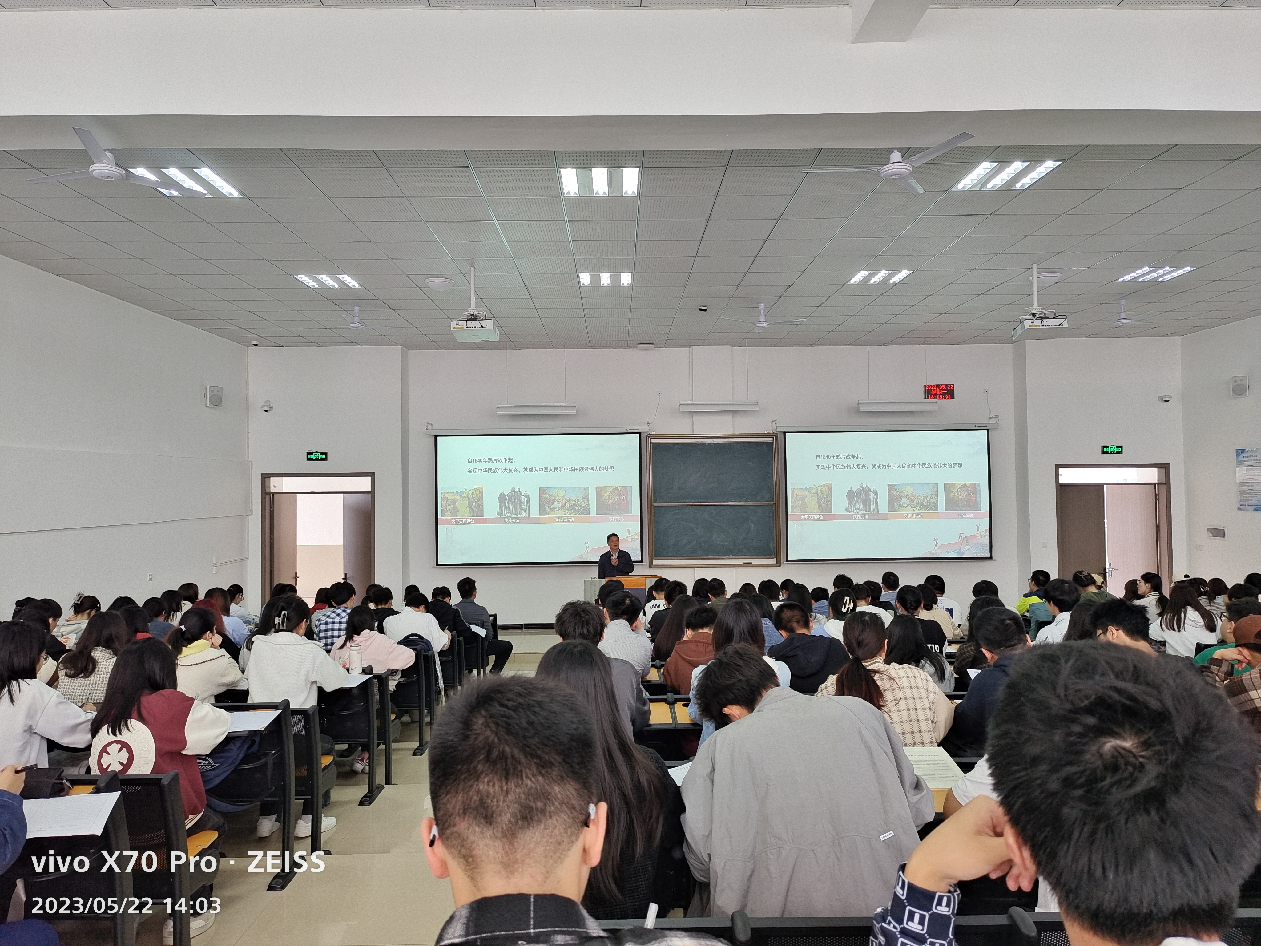 为深入学习贯彻党的二十大精神,深刻理解中国式现代化的时代内涵,坚定青年员工对实现中华民族伟大复兴中国梦的信心决心,5月22日下午,公司党委委员、附属医公司党委书记唐自力走进课堂,在新蒲校区第三教学楼第29阶梯为2022级本科生讲授《走好中国式现代化之路》的专题思政课。麻醉医公司党委副书记叶栋恒、员工第二党支部书记陈俊及2022级150名员工聆听。
