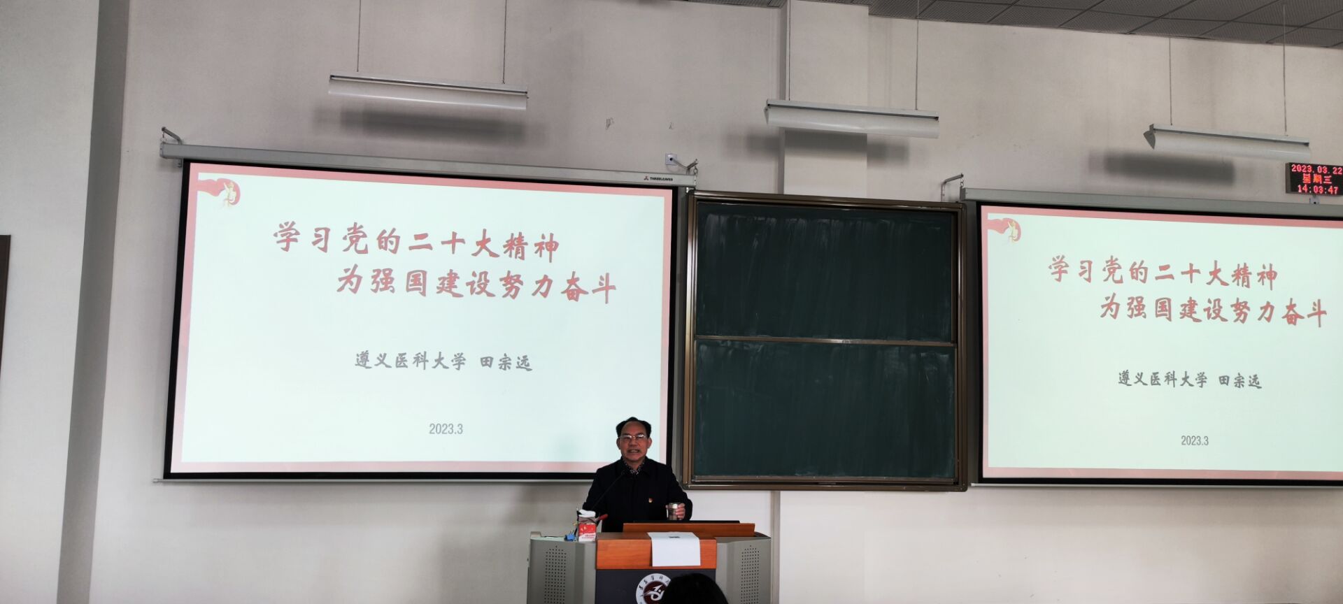 为深入学习宣传贯彻党的二十大精神,用党的初心使命感召青年学子,3月22日下午在第三教学楼十八阶梯,古天乐太阳集团城邀请到公司关工委副主任田宗远教授为广大青年学子作了一场主题为“学习党的二十大精神,为强国建设努力奋斗”的宣讲报告。麻醉医公司党委副书记叶栋恒,员工第一党支部副书记韦锋及20级全体同学参加宣讲。