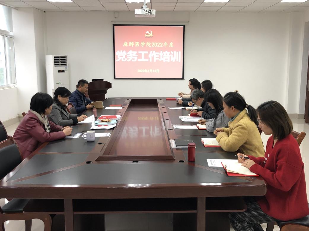 为提高麻醉医公司党务工作者的政治素质、业务水平和履职能力,根据上级党委相关工作要求及《麻醉医公司党务工作者常态化培训制度》文件精神,2022年1月13日,古天乐太阳集团城在公司会议室开展了2022年党务工作培训会,公司党委班子成员、各党支部书记及支委全部参加了培训。