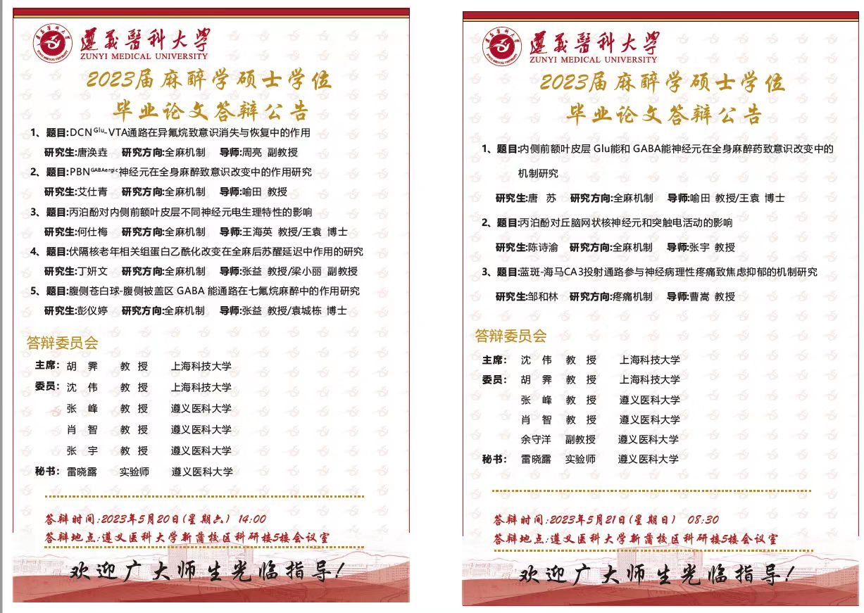 下一条:2023年春季麻醉学硕士研究生毕业论文答辩公告(第一批次)