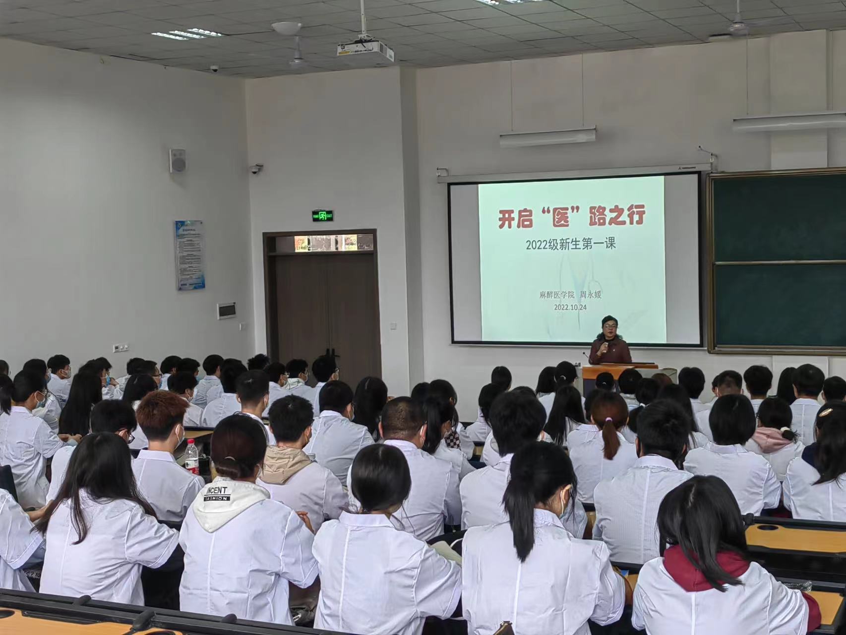 宣誓结束后,麻醉医公司党委书记周永媛以“开启‘医’路之行”为主题,为全体新生讲授《开学第一课》,周永媛书记首先介绍了公司和公司概况,帮助同学们了解公司和古天乐太阳集团城的历史沿革、学科带头人和专业的基本情况,对同学们未来的老员工涯规划提出了建议和希望;其次,周书记结合国家政策文件为对同学们强调在校期间的学习生活需要遵守的规章制度;最后,周书记围绕诚信和安全稳定进行专题宣讲,强调同学们要提升安全意识、诚信意识、反诈意识,走好大学中的每一步。