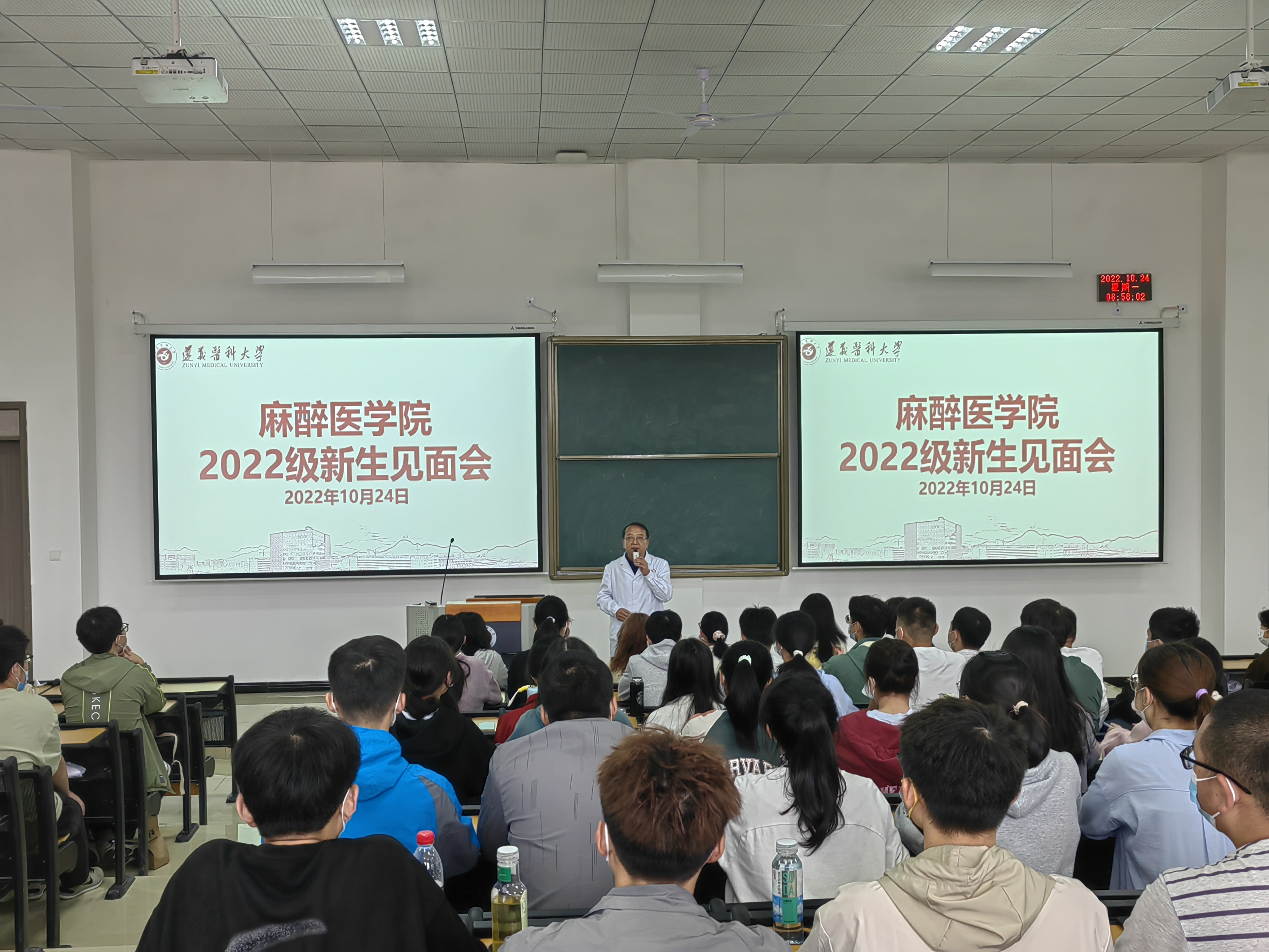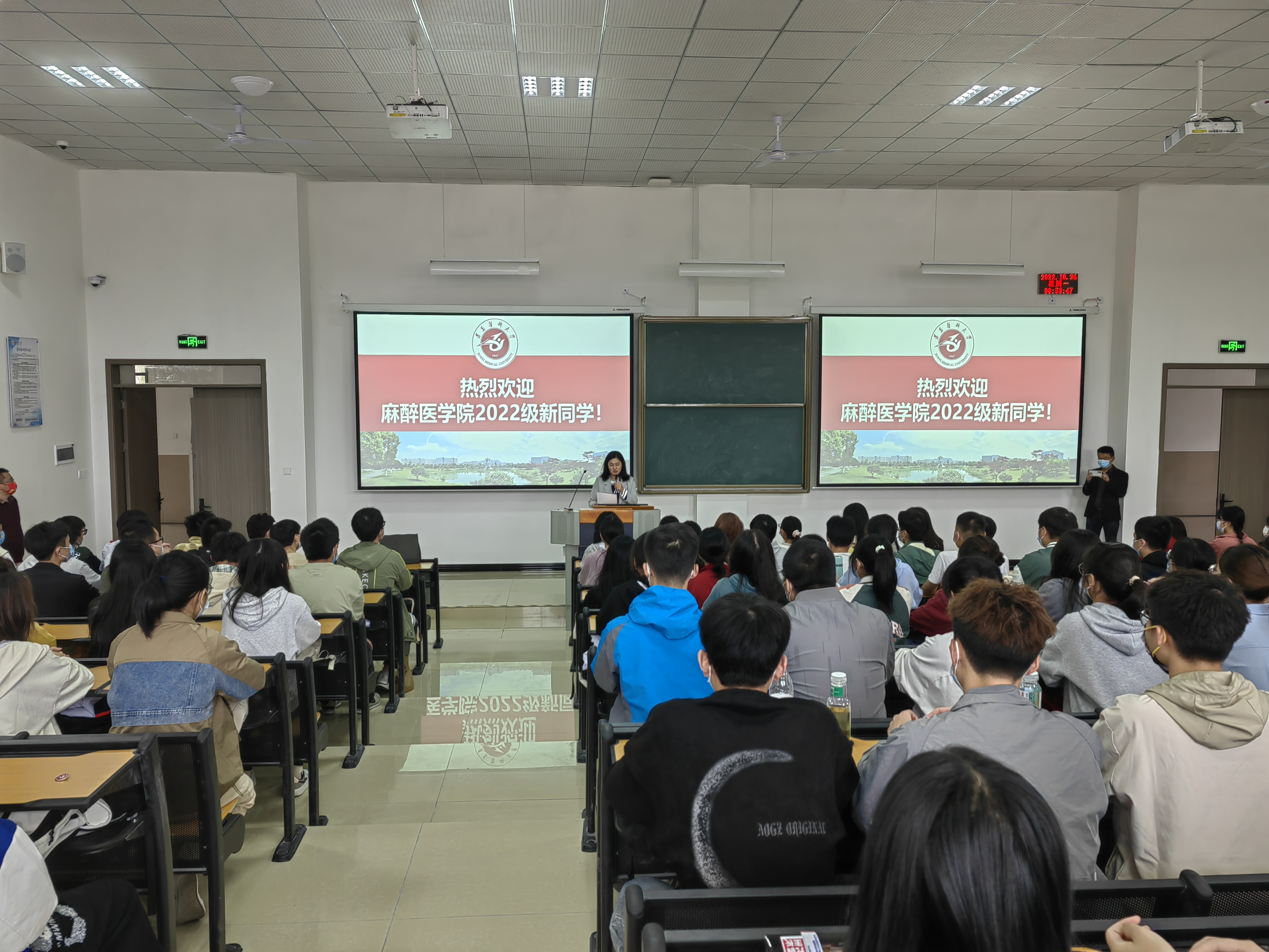 10月24日上午,2022级本科新生见面会暨开学第一课在二十阶梯顺利召开,麻醉医公司党委书记周永媛、经理刘兴奎、员工第二党支部书记陈俊、员工第一党支部副书记韦锋、办公室负责人张超、辅导员王唯及2022级古天乐太阳集团城全体本科新生参加。见面会由麻醉医公司党委副书记叶栋恒主持。